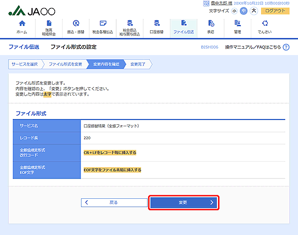 内容をご確認後、[変更]ボタンをクリックしてください。